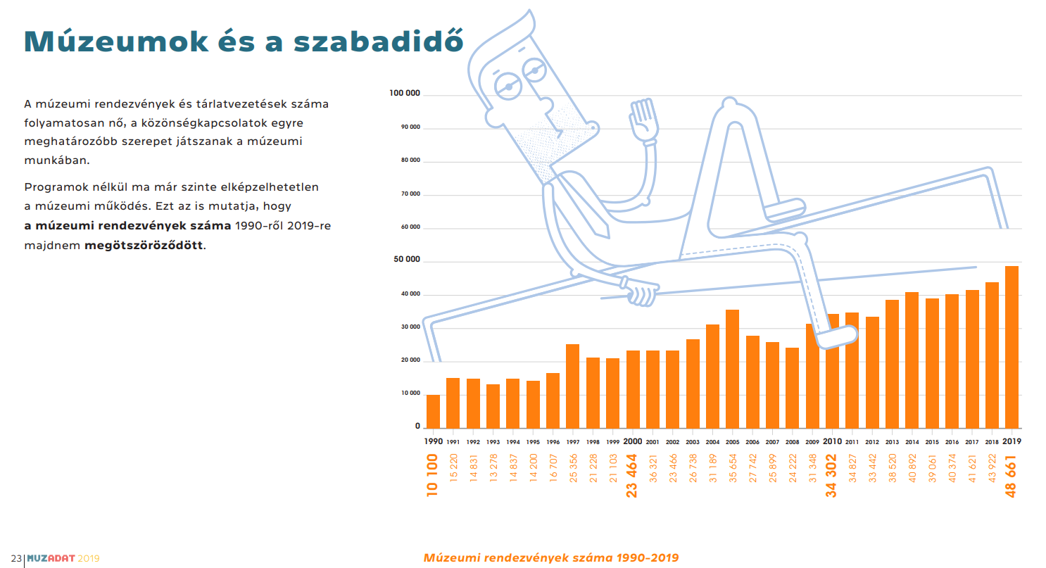 Nem feltétlenül: a pandémia előtt is az volt a bevett gyakorlat, hogy januárban kell az előző évről adatot szolgáltatni, tavasszal van a javítási/hiánypótlási időszak, és akkor egyszer csak felkerült a rendszerbe. Maga a rendszer működése szüli ezeket a nagy eltolódásokat. Mivel éves adatszolgáltatási rendszer van, ezért ez nem is lehetne gyorsabb. Ezen például úgy is lehetne változtatni, hogy negyedéves adatgyűjtéseket vezetnénk be. Nagy-Britanniában nyilvánosak a negyedéves adatok, és ezek friss adatok. Persze nem kellene minden adattípust negyedéves gyakorisággal szolgáltatni, például gyűjteményi adatot elég lenne évente egyszer. De vannak azonban olyan dinamikus múzeumi adatok, amiket hasznos gyakran látni. Például a múzeumpedagógusoknak azt, hogy programonként hány résztvevő volt. Ezt könnyen lehet mérni. Ahhoz, hogy az első negyedévben mi történt, az kellene, hogy április 20-ig leadják a múzeumok az első negyedéves adatokat. Úgyhogy ebben is lehetne fejlődni, de itt még alapvetően nem tartunk.